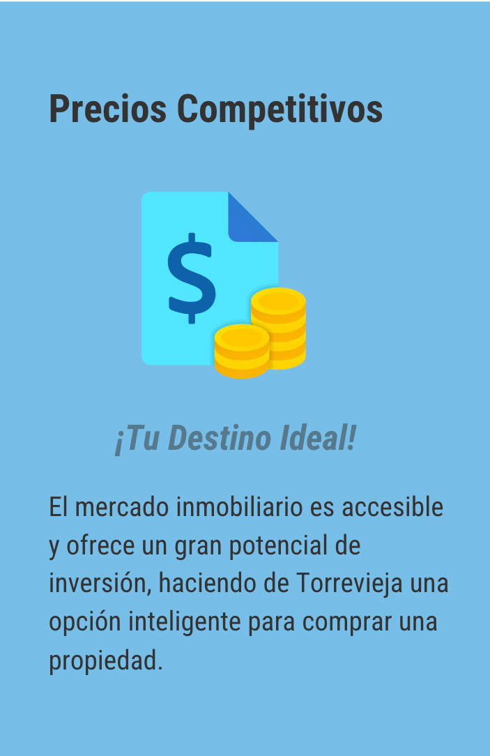 • Propiedades para Todos los Presupuestos: Desde encantadores apartamentos a precios asequibles, ideales para inversión o primera toma de contacto con Torrevieja, hasta lujosas villas frente al mar que te dejarán sin aliento.