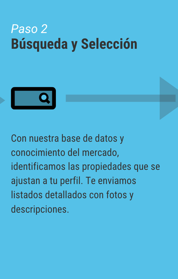 2. Búsqueda y Selección de Propiedades: Con nuestra base de datos y conocimiento del mercado, identificamos las propiedades que mejor se ajustan a tu perfil. Te enviamos listados detallados con fotos de alta calidad y descripciones completas.