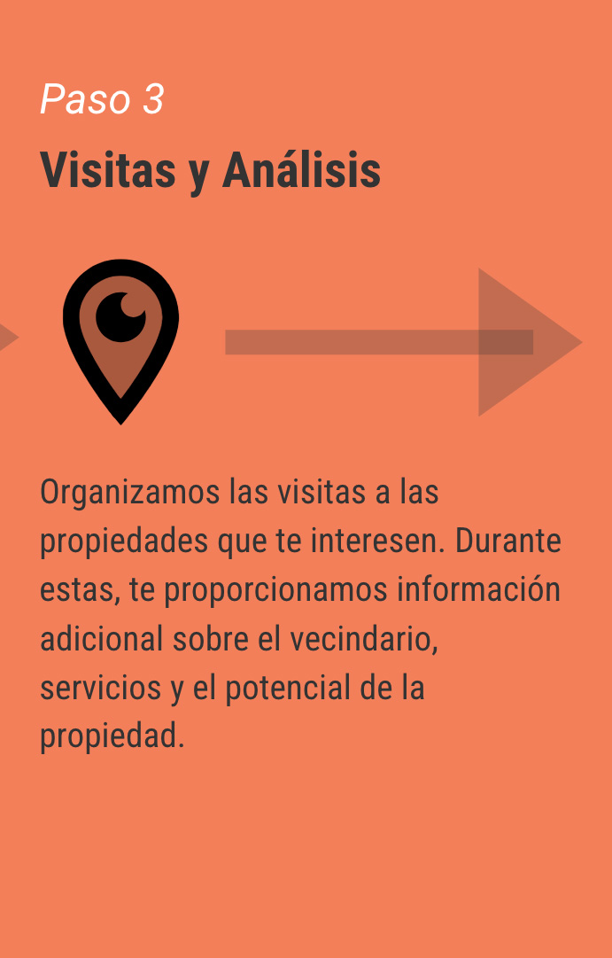 3. Visitas y Análisis: Organizamos las visitas a las propiedades que te interesen. Durante estas visitas, te proporcionamos información adicional sobre el vecindario, servicios cercanos y el potencial de la propiedad. Respondemos a todas tus preguntas.