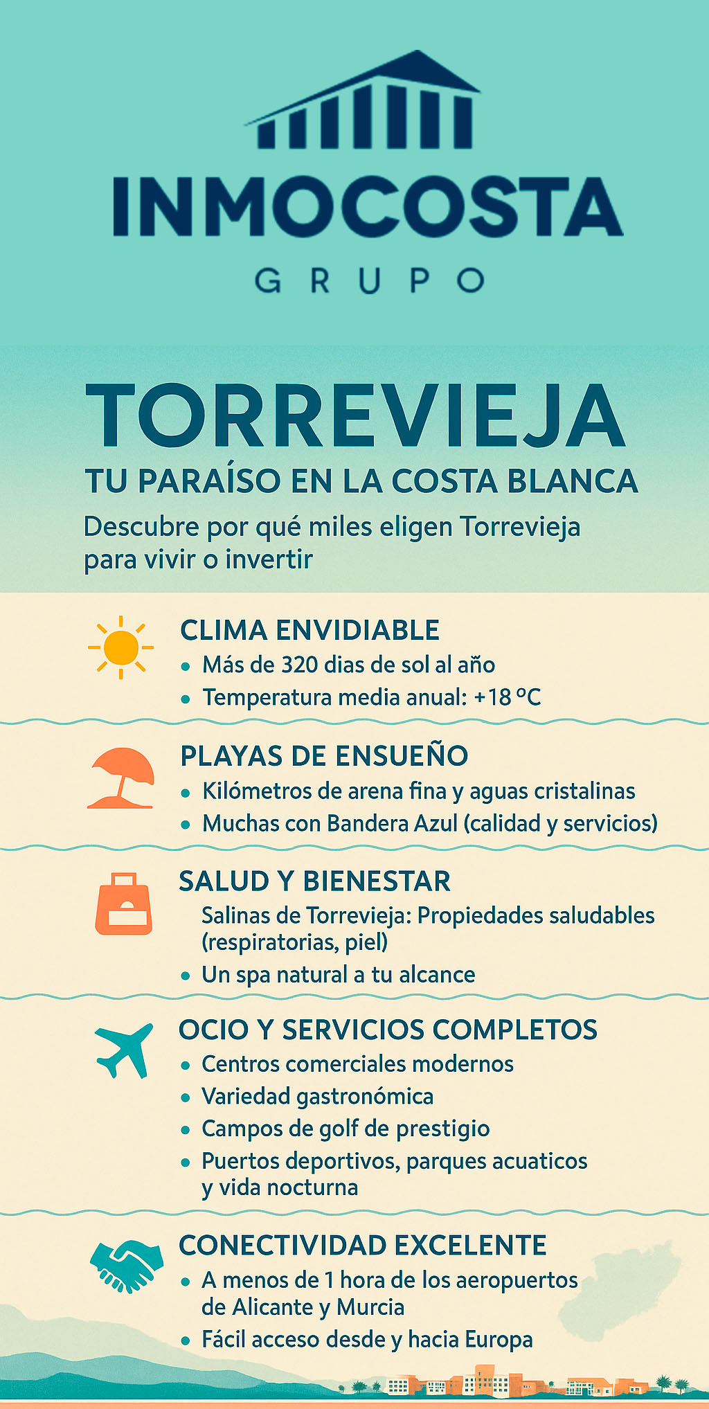 10. ¿Por qué elegir InmoCosta en lugar de otra inmobiliaria? Elegir InmoCosta es elegir tranquilidad, experiencia y resultados. No solo te ayudamos a encontrar una casa, sino que te ofrecemos un servicio integral: profundo conocimiento del mercado de Torrevieja, un catálogo muy variado, asesoramiento personalizado, soporte legal y financiero, y una transparencia total. ¡Somos tu socio local para que tu sueño mediterráneo se haga realidad!