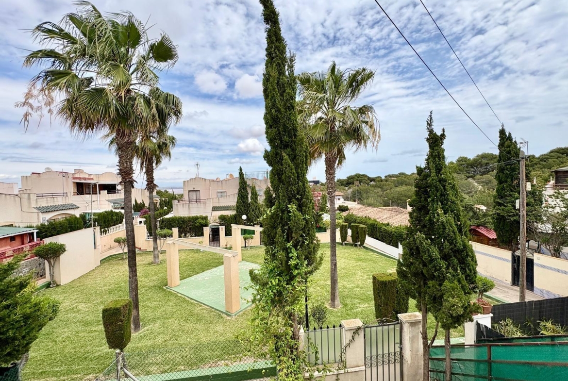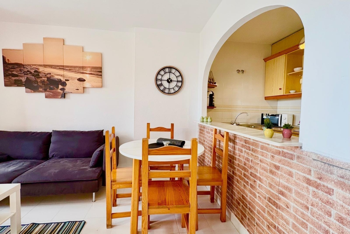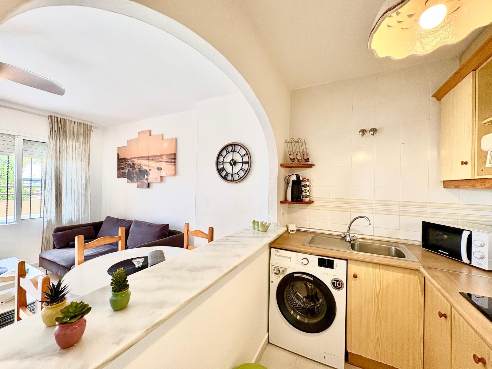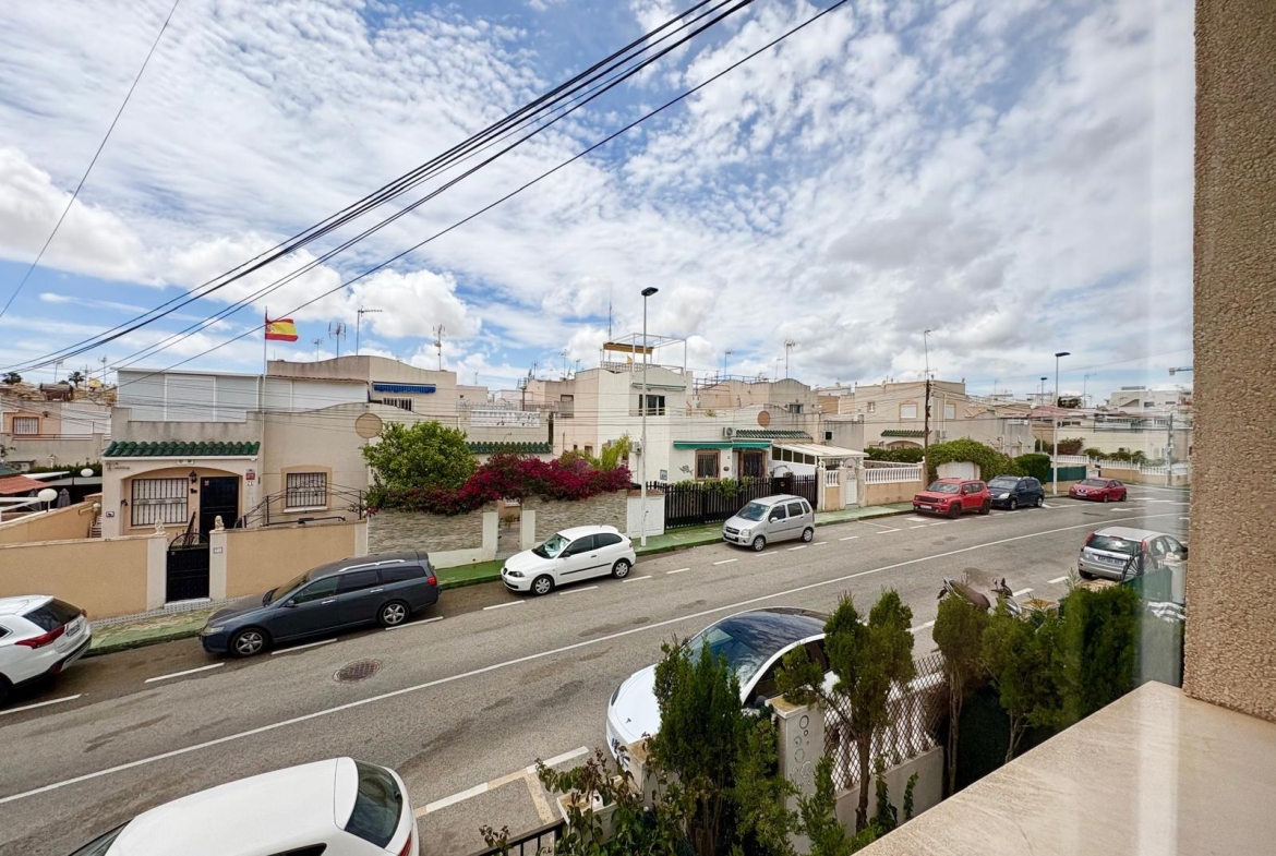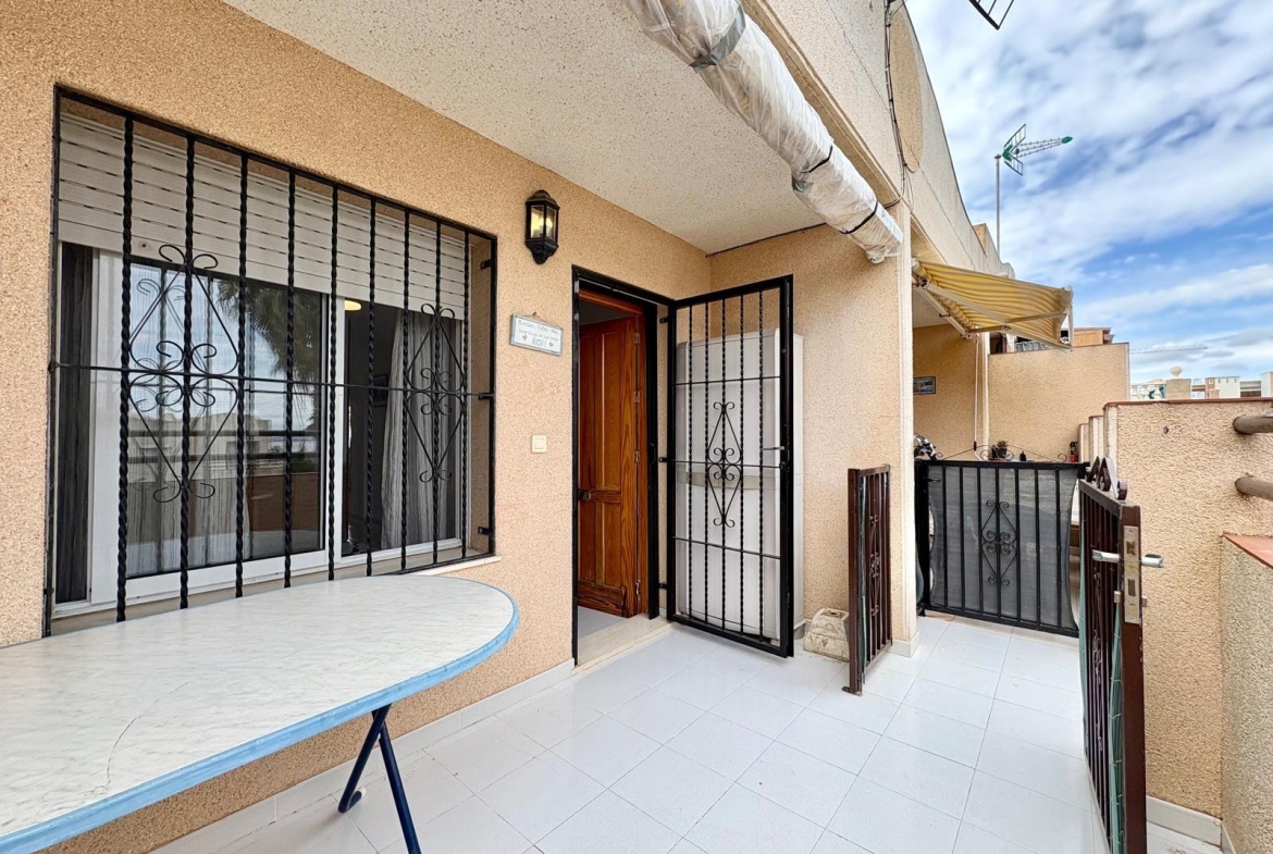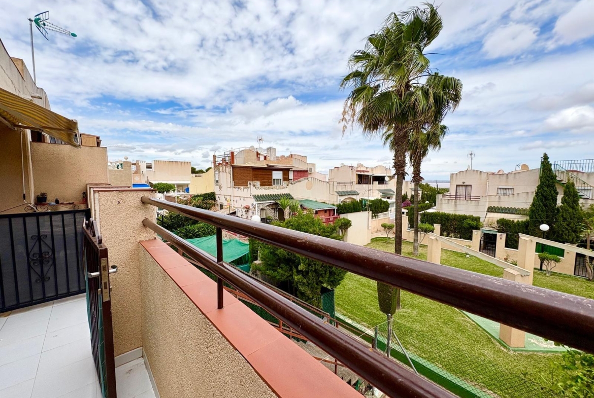 Charming top-floor bungalow in Lago Jardín II – ready to enjoy from day one. Located in a quiet residential area on the coast, this cozy first-floor bungalow is ideal both as a second home and as a holiday rental investment. The property features a spacious double bedroom with a built-in wardrobe, a full bathroom with a bathtub, an open-plan kitchen, a living-dining room, and a pleasant terrace with unobstructed views of the communal gardens. It enjoys excellent orientation: the terrace faces northeast and the bedroom faces southwest, ensuring natural light throughout the day. The area offers a peaceful setting surrounded by nature, yet with all amenities within easy reach: bars, a bus stop, a supermarket, a pharmacy, and the magnificent beaches of Torrevieja just 3 km away. Communal pool (please inquire). A perfect opportunity for those seeking tranquility without sacrificing comfort. Are you going to miss out?