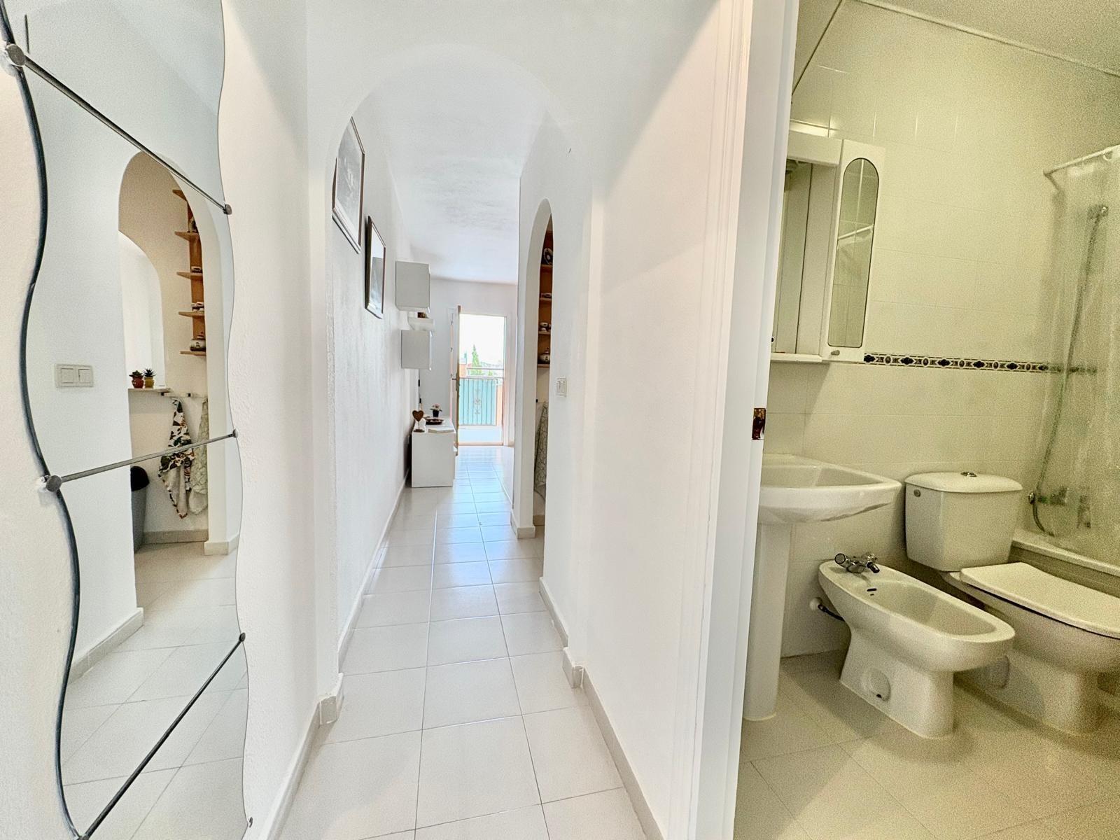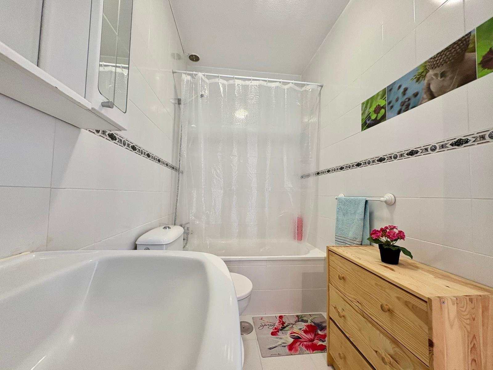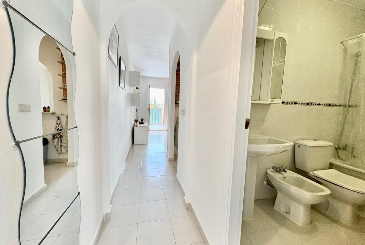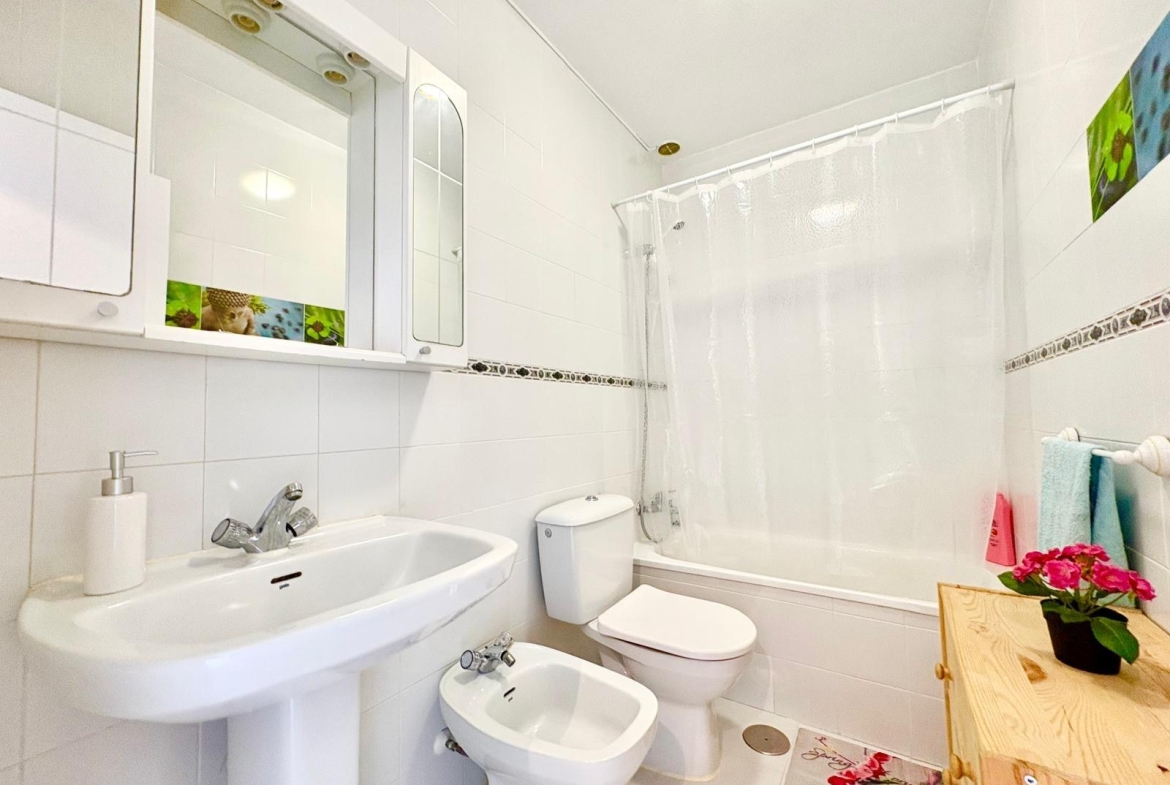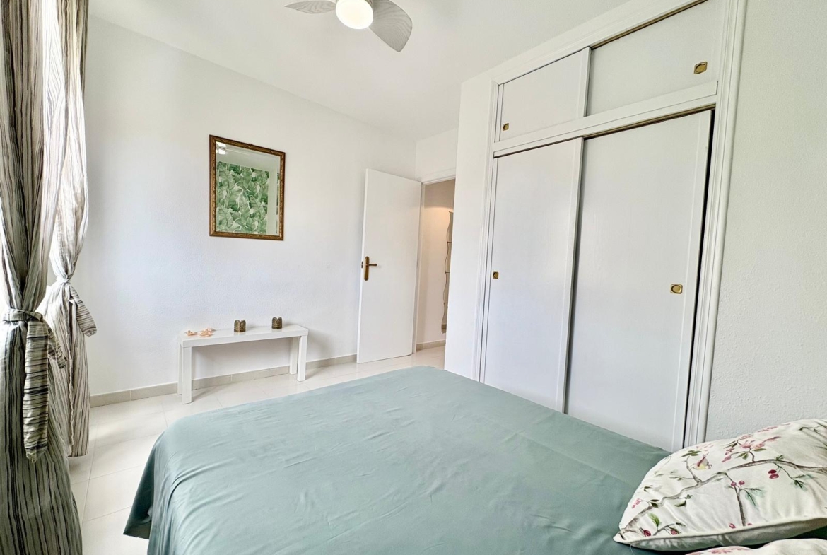 Charming top-floor bungalow in Lago Jardín II – ready to enjoy from day one. Located in a quiet residential area on the coast, this cozy first-floor bungalow is ideal both as a second home and as a holiday rental investment. The property features a spacious double bedroom with a built-in wardrobe, a full bathroom with a bathtub, an open-plan kitchen, a living-dining room, and a pleasant terrace with unobstructed views of the communal gardens. It enjoys excellent orientation: the terrace faces northeast and the bedroom faces southwest, ensuring natural light throughout the day. The area offers a peaceful setting surrounded by nature, yet with all amenities within easy reach: bars, a bus stop, a supermarket, a pharmacy, and the magnificent beaches of Torrevieja just 3 km away. Communal pool (please inquire). A perfect opportunity for those seeking tranquility without sacrificing comfort. Are you going to miss out?