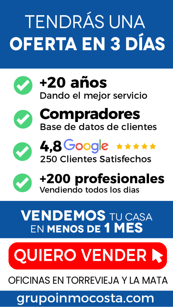 Una de las decisiones clave. En zonas como Torrevieja centro, La Mata o Playa Flamenca, una pequeña reforma puede aumentar el valor de venta considerablemente. En cambio, si quieres vender rápido, también es posible sacarla al mercado tal como está. En Grupo Inmocosta te asesoramos sobre qué opción es más rentable según la ubicación y estado de la vivienda.