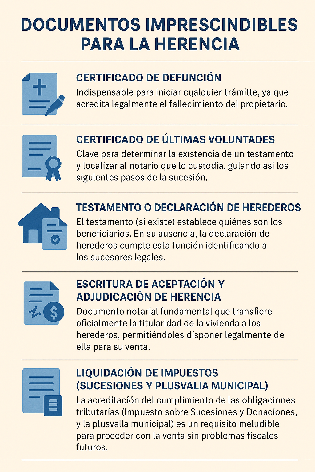 La correcta formalización de la venta de una propiedad heredada depende críticamente de tener la documentación completa y actualizada. Cada documento juega un papel esencial en el proceso legal. Aquí te detallamos los que no pueden faltar: