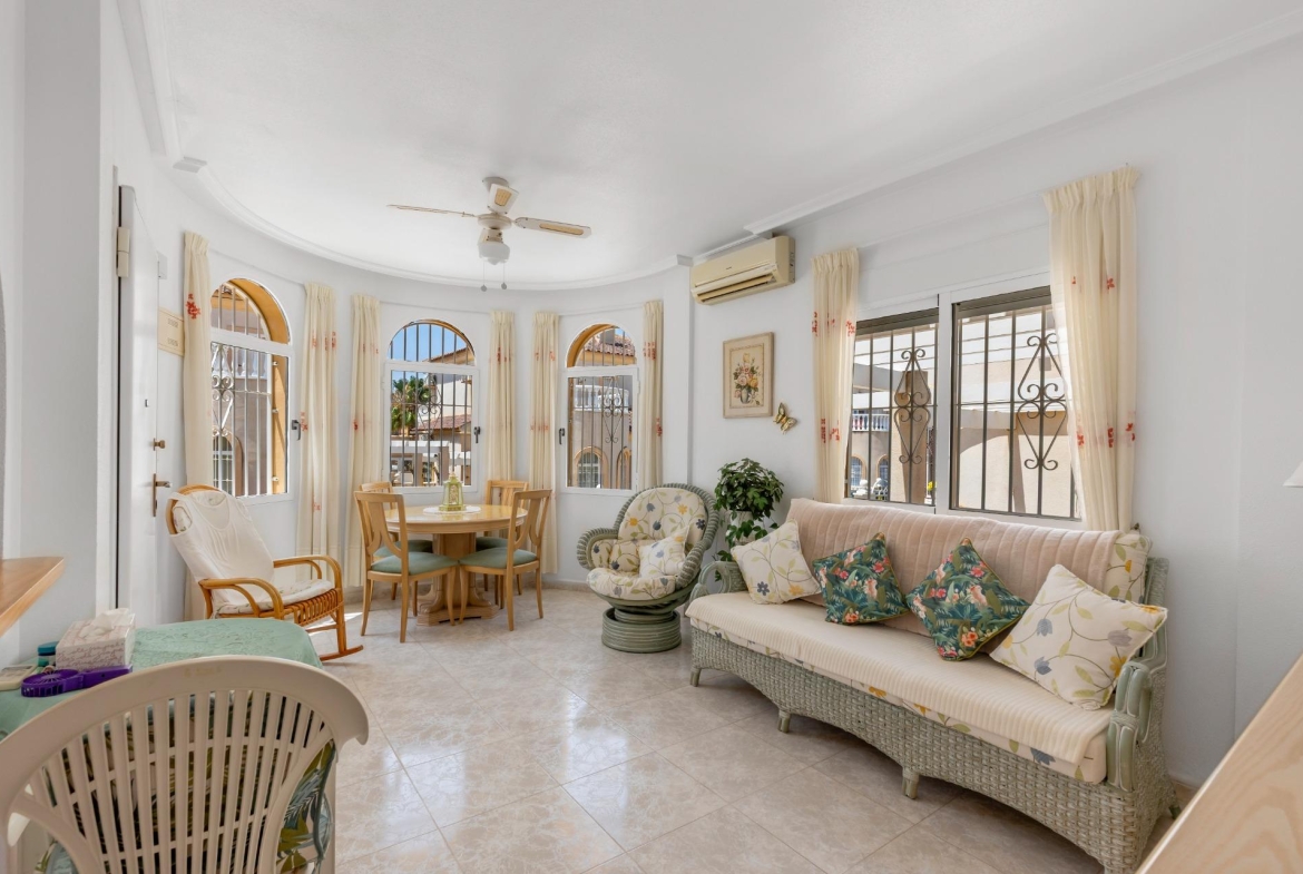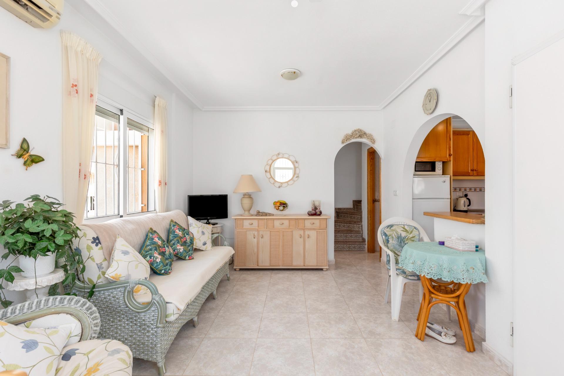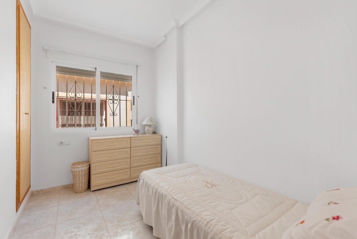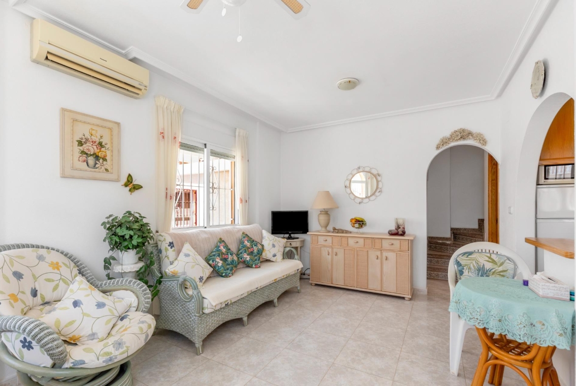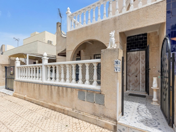 Te presentamos este encantador adosado situado en una de las zonas más cotizadas de Torrevieja: Aguas Nuevas. Con una superficie construida de 63 m² y una parcela de 82 m², esta propiedad destaca por su excelente estado de conservación y su orientación sur, que garantiza luz natural durante todo el día.~~La vivienda cuenta con 2 amplios dormitorios dobles, un baño completo y un aseo de cortesía, ideal para la comodidad de toda la familia. Disfruta de una acogedora terraza, un balcón soleado y un bonito jardín privado, perfecto para relajarse o compartir momentos al aire libre.~~Se vende completamente amueblada, por lo que está lista para entrar a vivir desde el primer día. Además, forma parte de una urbanización tranquila con piscina comunitaria, ideal para refrescarse en los días calurosos de verano.~~Extras incluidos: aire acondicionado, armarios empotrados, zonas ajardinadas, buena conexión con todos los servicios: supermercados, colegios, centros médicos, centros comerciales, transporte público, parques y zonas infantiles. Y todo esto a solo 2 km de las playas de Torrevieja.~~¡No dejes pasar esta oportunidad! Contacta con nosotros para descubrir cómo esta apasionante vivienda podría convertirse en tu nuevo hogar.~~¿Pensando en vender tu propiedad y adquirir este apartamento de ensueño? Nuestra agencia te ofrece una valoración gratuita, con más de 20 años de experiencia en el sector y los datos de ventas más actualizados. Te ayudaremos a conseguir una venta rápida y ventajosa, para que puedas comenzar a disfrutar de la vida que siempre has querido junto al mar.~~¡Contáctanos ahora y da el primer paso hacia tu nueva vida en la Costa Blanca!