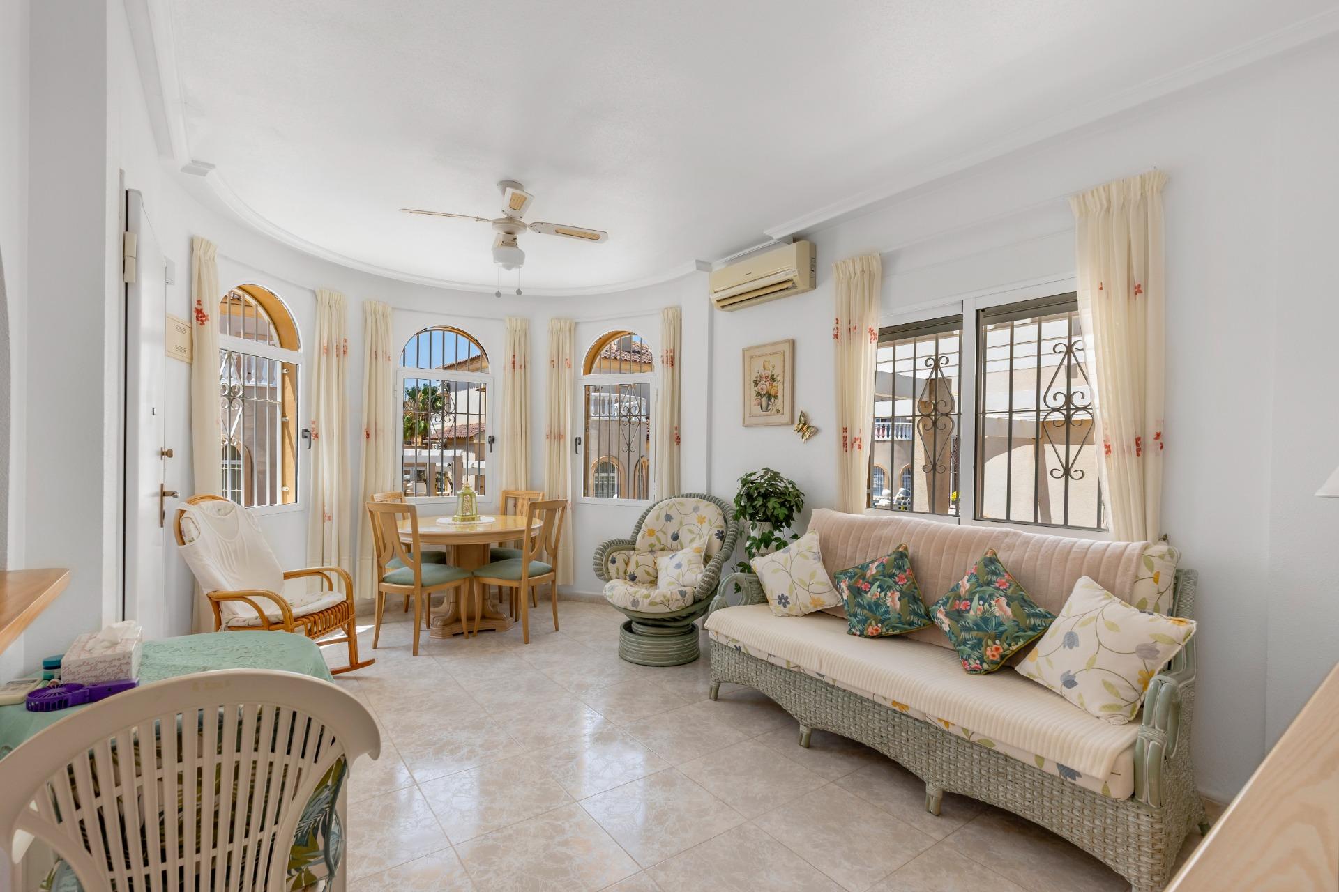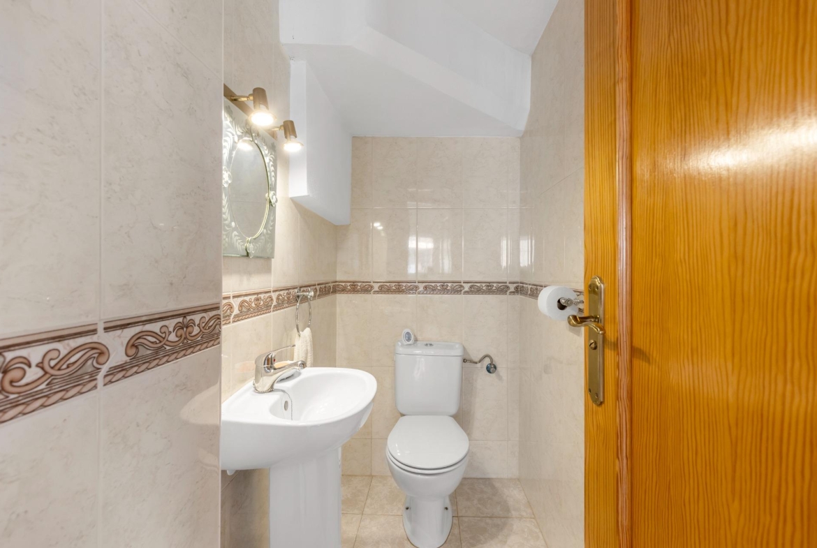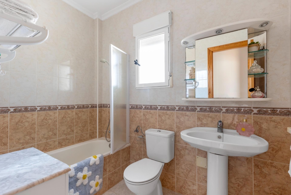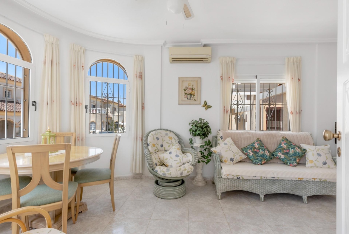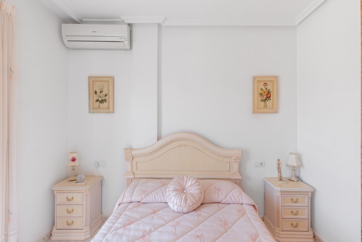 Te presentamos este encantador adosado situado en una de las zonas más cotizadas de Torrevieja: Aguas Nuevas. Con una superficie construida de 63 m² y una parcela de 82 m², esta propiedad destaca por su excelente estado de conservación y su orientación sur, que garantiza luz natural durante todo el día.~~La vivienda cuenta con 2 amplios dormitorios dobles, un baño completo y un aseo de cortesía, ideal para la comodidad de toda la familia. Disfruta de una acogedora terraza, un balcón soleado y un bonito jardín privado, perfecto para relajarse o compartir momentos al aire libre.~~Se vende completamente amueblada, por lo que está lista para entrar a vivir desde el primer día. Además, forma parte de una urbanización tranquila con piscina comunitaria, ideal para refrescarse en los días calurosos de verano.~~Extras incluidos: aire acondicionado, armarios empotrados, zonas ajardinadas, buena conexión con todos los servicios: supermercados, colegios, centros médicos, centros comerciales, transporte público, parques y zonas infantiles. Y todo esto a solo 2 km de las playas de Torrevieja.~~¡No dejes pasar esta oportunidad! Contacta con nosotros para descubrir cómo esta apasionante vivienda podría convertirse en tu nuevo hogar.~~¿Pensando en vender tu propiedad y adquirir este apartamento de ensueño? Nuestra agencia te ofrece una valoración gratuita, con más de 20 años de experiencia en el sector y los datos de ventas más actualizados. Te ayudaremos a conseguir una venta rápida y ventajosa, para que puedas comenzar a disfrutar de la vida que siempre has querido junto al mar.~~¡Contáctanos ahora y da el primer paso hacia tu nueva vida en la Costa Blanca!