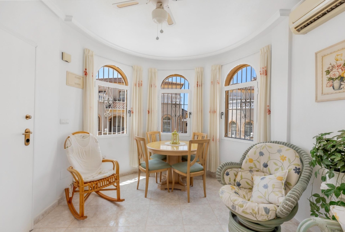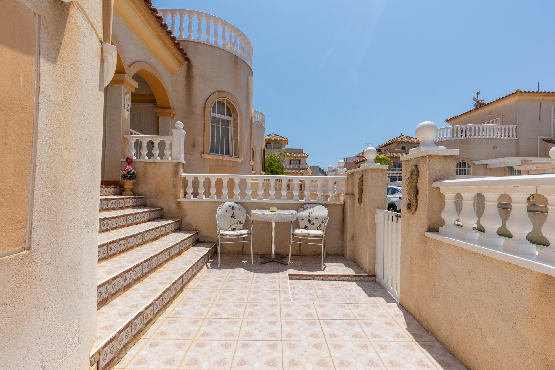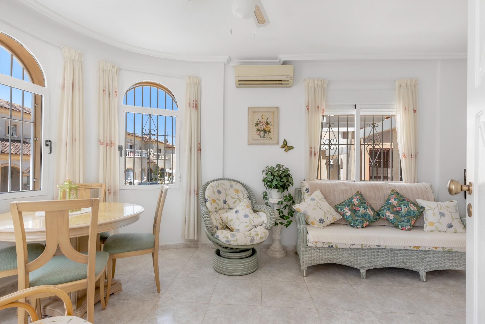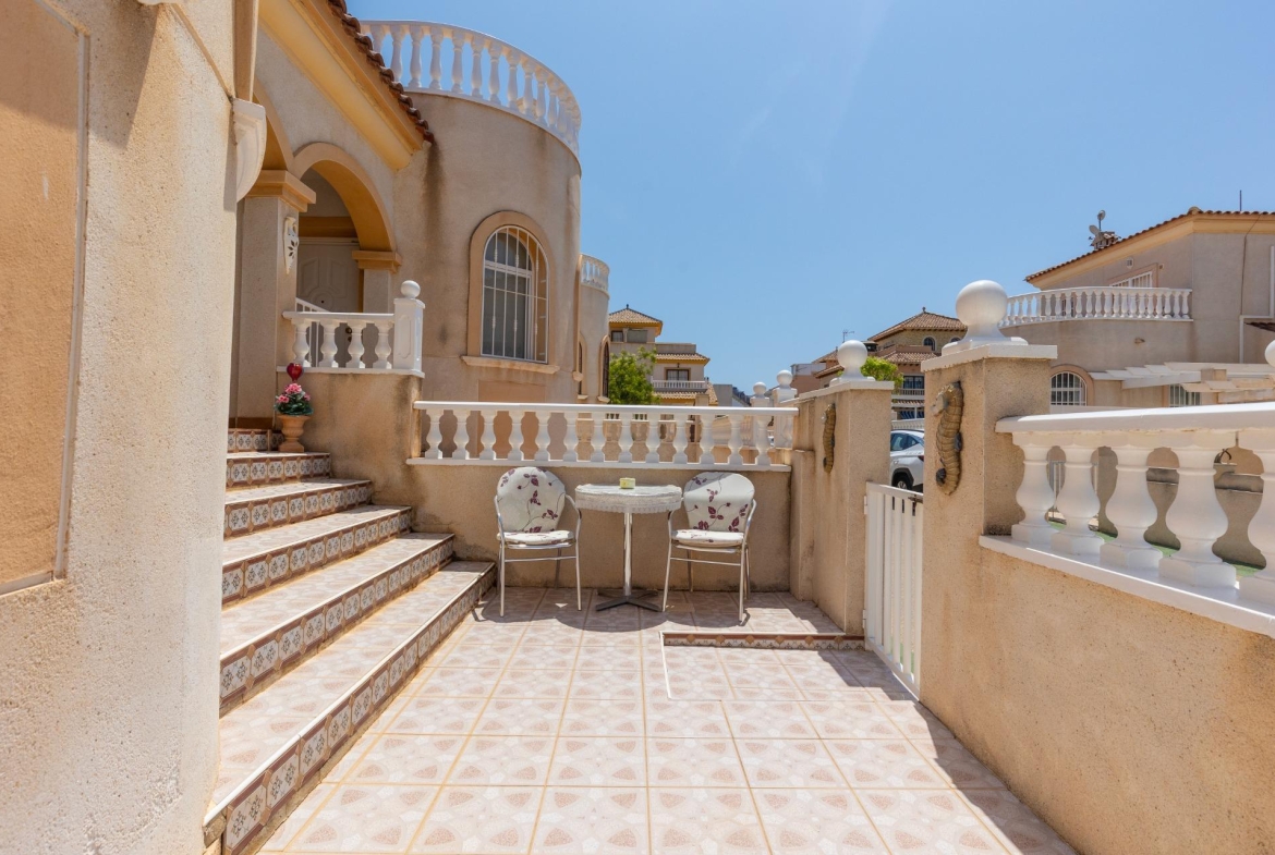 Te presentamos este encantador adosado situado en una de las zonas más cotizadas de Torrevieja: Aguas Nuevas. Con una superficie construida de 63 m² y una parcela de 82 m², esta propiedad destaca por su excelente estado de conservación y su orientación sur, que garantiza luz natural durante todo el día.~~La vivienda cuenta con 2 amplios dormitorios dobles, un baño completo y un aseo de cortesía, ideal para la comodidad de toda la familia. Disfruta de una acogedora terraza, un balcón soleado y un bonito jardín privado, perfecto para relajarse o compartir momentos al aire libre.~~Se vende completamente amueblada, por lo que está lista para entrar a vivir desde el primer día. Además, forma parte de una urbanización tranquila con piscina comunitaria, ideal para refrescarse en los días calurosos de verano.~~Extras incluidos: aire acondicionado, armarios empotrados, zonas ajardinadas, buena conexión con todos los servicios: supermercados, colegios, centros médicos, centros comerciales, transporte público, parques y zonas infantiles. Y todo esto a solo 2 km de las playas de Torrevieja.~~¡No dejes pasar esta oportunidad! Contacta con nosotros para descubrir cómo esta apasionante vivienda podría convertirse en tu nuevo hogar.~~¿Pensando en vender tu propiedad y adquirir este apartamento de ensueño? Nuestra agencia te ofrece una valoración gratuita, con más de 20 años de experiencia en el sector y los datos de ventas más actualizados. Te ayudaremos a conseguir una venta rápida y ventajosa, para que puedas comenzar a disfrutar de la vida que siempre has querido junto al mar.~~¡Contáctanos ahora y da el primer paso hacia tu nueva vida en la Costa Blanca!