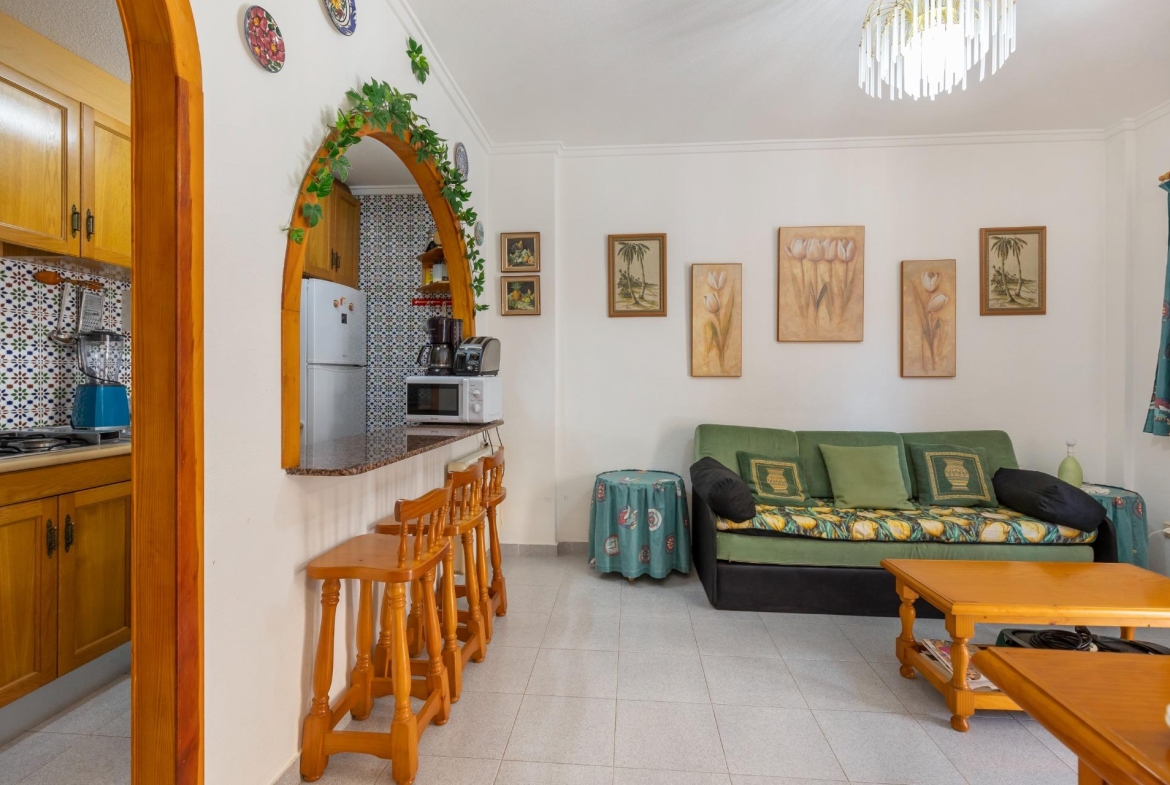 Apartamento en Torreblanca, Torrevieja. ~~Este acogedor apartamento en la primera planta se encuentra en la excelente zona de Torreblanca, Torrevieja. Con dos dormitorios, un baño con ducha, y una cocina americana abierta al salón, este hogar es ideal para quienes buscan confort y funcionalidad. La amplia terraza orientada al sur permite disfrutar del sol durante todo el día, creando un espacio perfecto para relajarse.~~La propiedad cuenta con un pequeño trastero para mayor almacenamiento y los residentes pueden disfrutar de una piscina comunitaria.~~La ubicación es inmejorable: justo enfrente del edificio se encuentra una parada de autobús que facilita la movilidad, y a solo unos pasos encontrarás un Mercadona, ideal para hacer tus compras diarias. La zona también ofrece una gran variedad de bares y pubs para disfrutar del ocio, así como pistas públicas de fútbol cercanas, perfectas para los amantes del deporte. Además, está cerca de tiendas, restaurantes y algunas de las mejores playas de Torrevieja, lo que asegura una vida cómoda y de calidad en una de las zonas más deseadas de la ciudad.