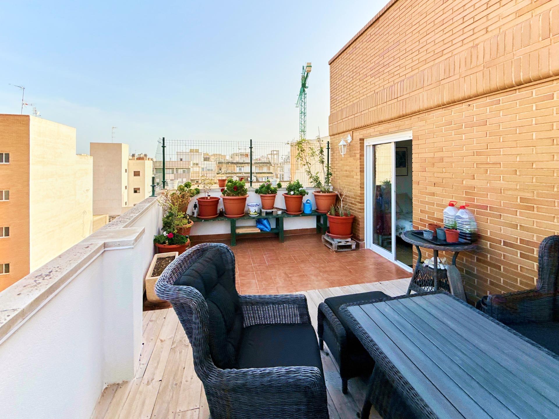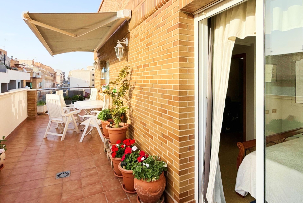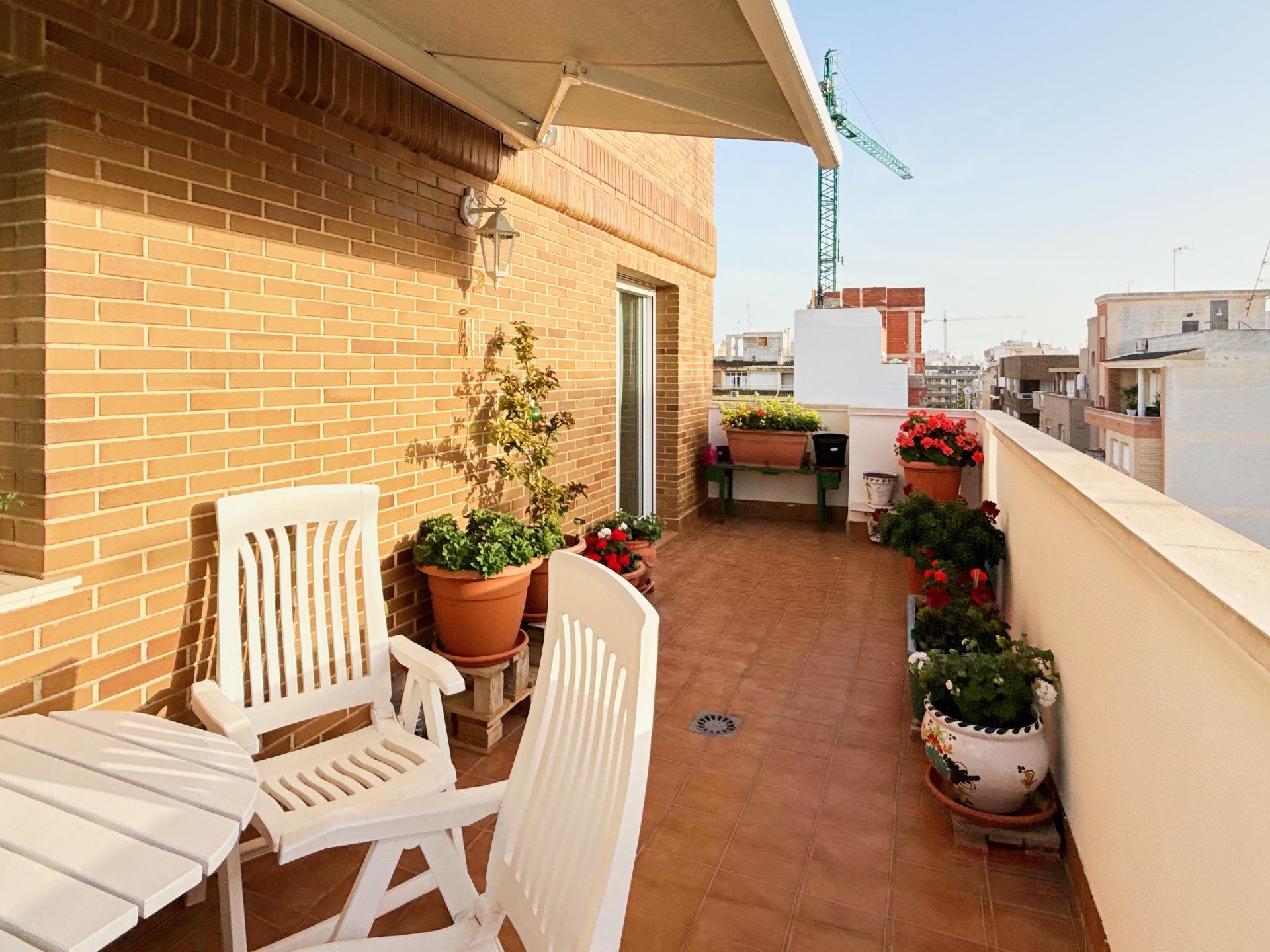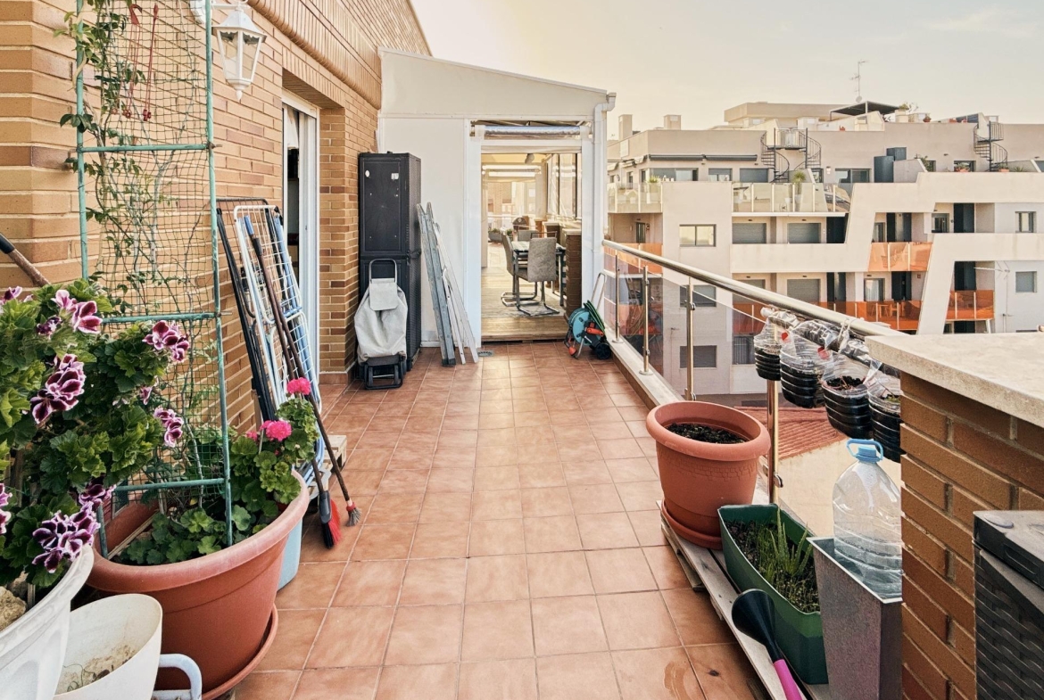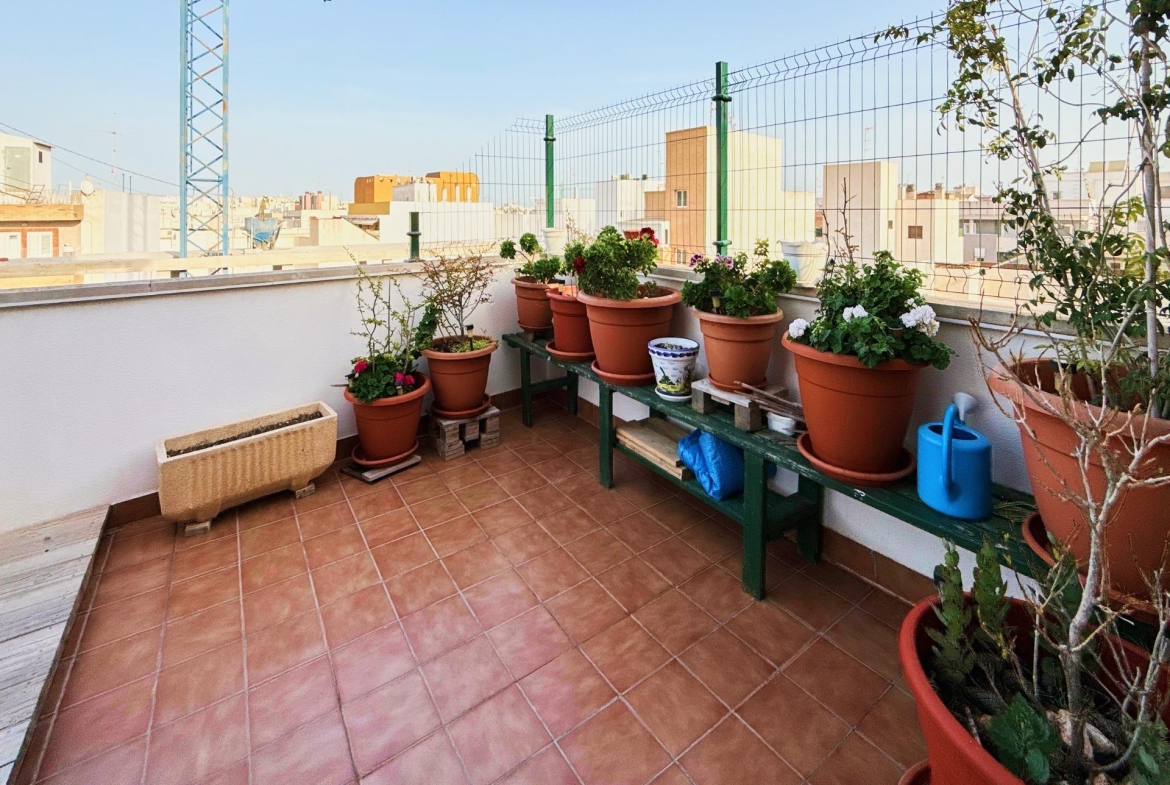 Os presentamos esta maravilla de Ático en la zona centro de Torrevieja.~~La vivienda es un ático compuesto de 4 habitaciones y 2 baños (uno de ellos en suite para la habitación principal). ~Sus dos terrazas nos brindan la oportunidad de relajarte en varios lugares, disfrutando de múltiples orientaciones y poder aprovechar todos los momentos de sol y de sombra según el momento del día.~2 de las habitaciones están conectadas directamente con la terraza principal que rodea en forma de L la vivienda y 1 de habitación tiene su propia terraza de unos 15 metros cuadrados.~Igualmente, en la terraza principal, hay un espacio con una pérgola para poder disfrutar de una buena comida con familiares y amigos, un buen momento de relajación y poder aprovechar los más de 300 días de sol que nos regala el envidiable clima de Torrevieja.~~Además, tiene una cocina independiente completamente equipada tiene igualmente acceso a la terraza y a la parte de la terraza que está cubierta y acristalada, que está estratégicamente ubicada a la salida de la cocina.~~En esta casa nos encontraremos acabados de gran calidad y luminosidad durante todos los momentos del día.~~En el precio viene incluido una plaza de garaje y un trastero en un edificio a 100m para que te olvides de buscar aparcamiento en la zona.~La céntrica ubicación del ático nos permite tener todos los servicios a escasos minutos andando. La plaza de la Constitución esta a 3 minutos andando y el Paseo de Vista Alegre con el puerto a 7 minutos andando (500m).~~Ven YA a visitar esta propiedad exclusiva y quédate sin palabras!!