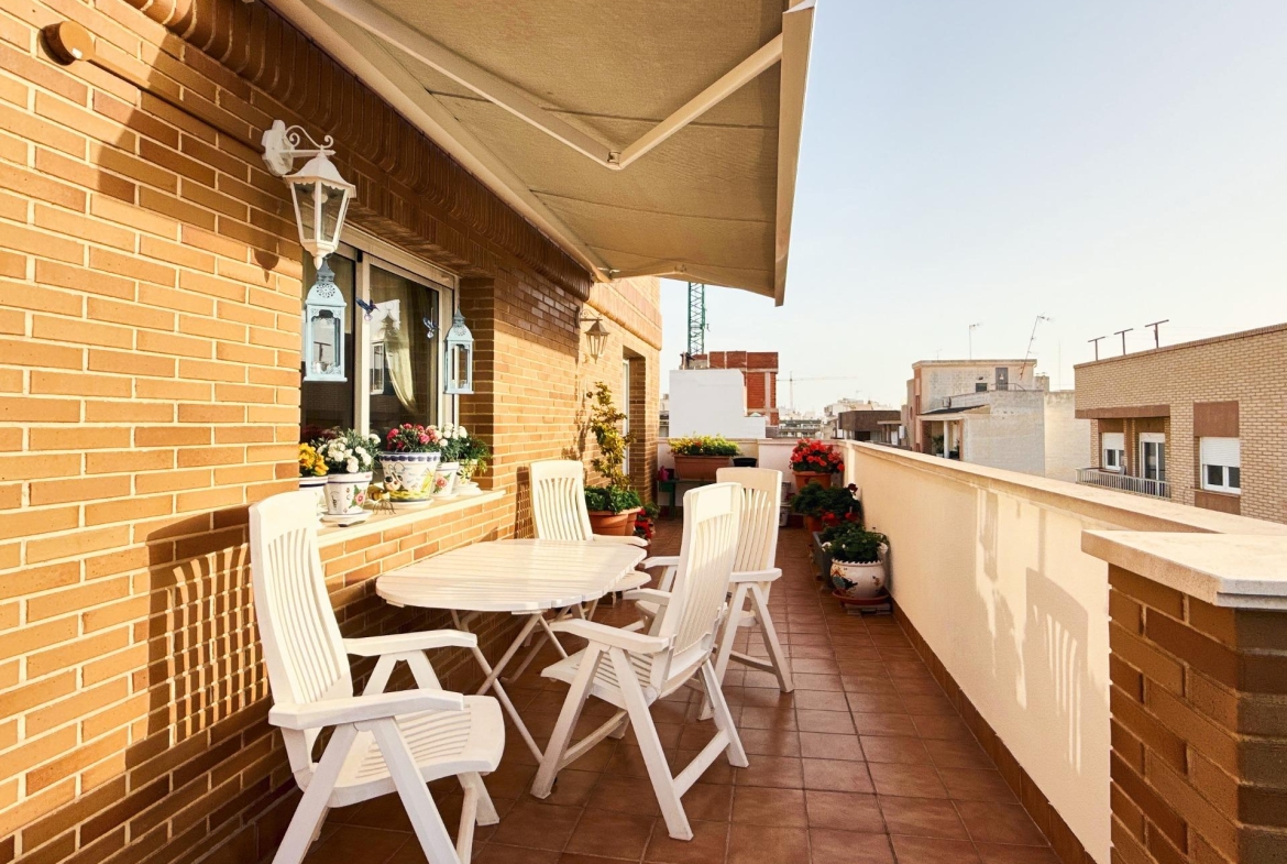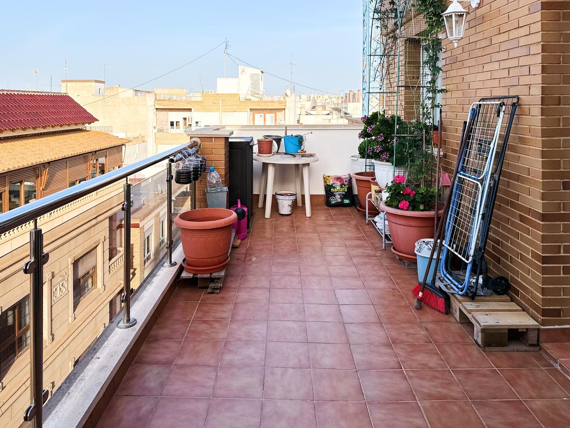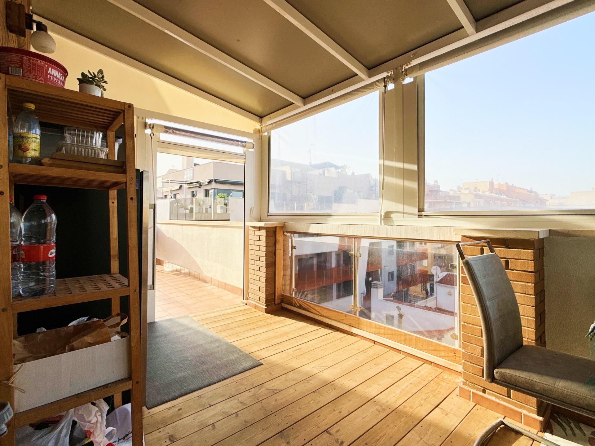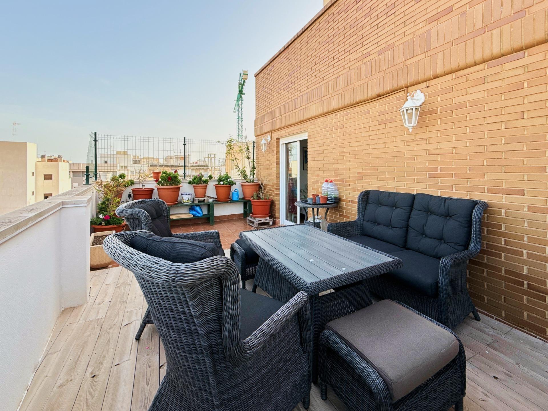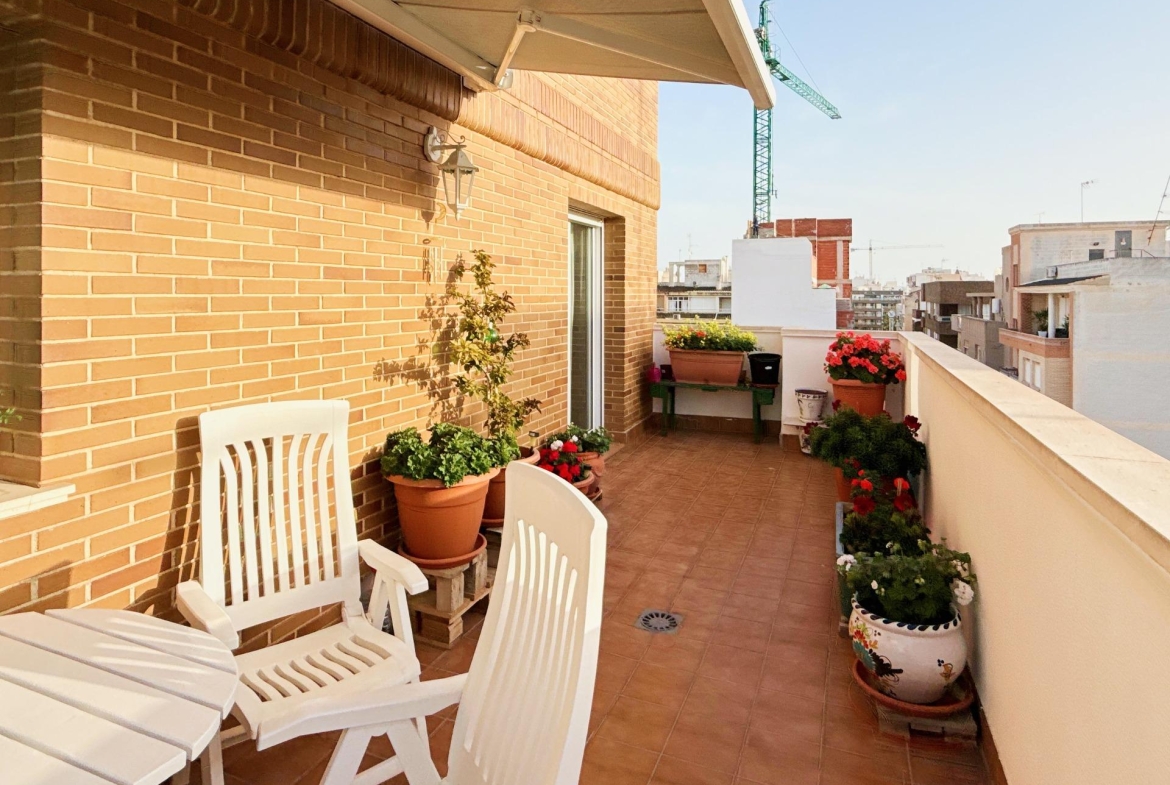 Os presentamos esta maravilla de Ático en la zona centro de Torrevieja.~~La vivienda es un ático compuesto de 4 habitaciones y 2 baños (uno de ellos en suite para la habitación principal). ~Sus dos terrazas nos brindan la oportunidad de relajarte en varios lugares, disfrutando de múltiples orientaciones y poder aprovechar todos los momentos de sol y de sombra según el momento del día.~2 de las habitaciones están conectadas directamente con la terraza principal que rodea en forma de L la vivienda y 1 de habitación tiene su propia terraza de unos 15 metros cuadrados.~Igualmente, en la terraza principal, hay un espacio con una pérgola para poder disfrutar de una buena comida con familiares y amigos, un buen momento de relajación y poder aprovechar los más de 300 días de sol que nos regala el envidiable clima de Torrevieja.~~Además, tiene una cocina independiente completamente equipada tiene igualmente acceso a la terraza y a la parte de la terraza que está cubierta y acristalada, que está estratégicamente ubicada a la salida de la cocina.~~En esta casa nos encontraremos acabados de gran calidad y luminosidad durante todos los momentos del día.~~En el precio viene incluido una plaza de garaje y un trastero en un edificio a 100m para que te olvides de buscar aparcamiento en la zona.~La céntrica ubicación del ático nos permite tener todos los servicios a escasos minutos andando. La plaza de la Constitución esta a 3 minutos andando y el Paseo de Vista Alegre con el puerto a 7 minutos andando (500m).~~Ven YA a visitar esta propiedad exclusiva y quédate sin palabras!!