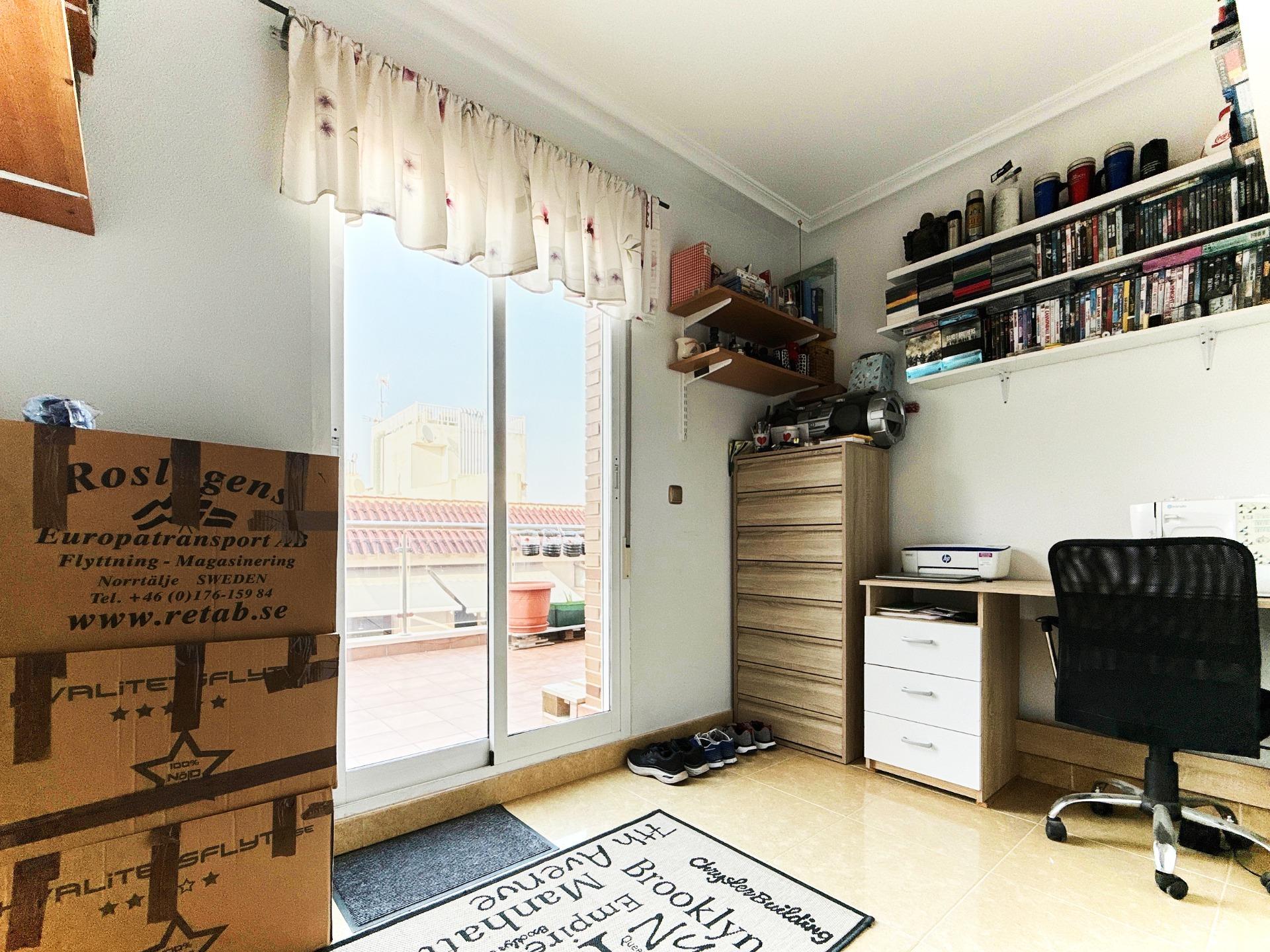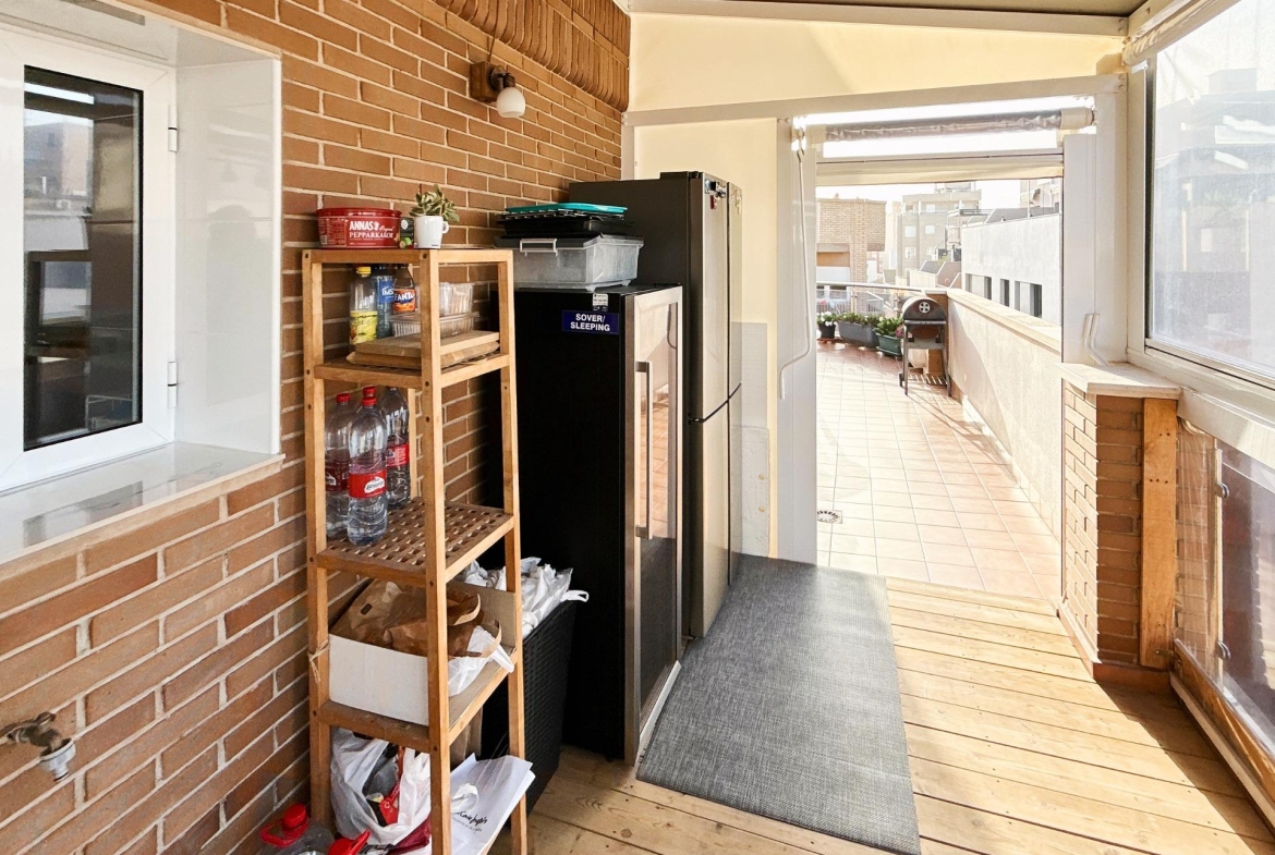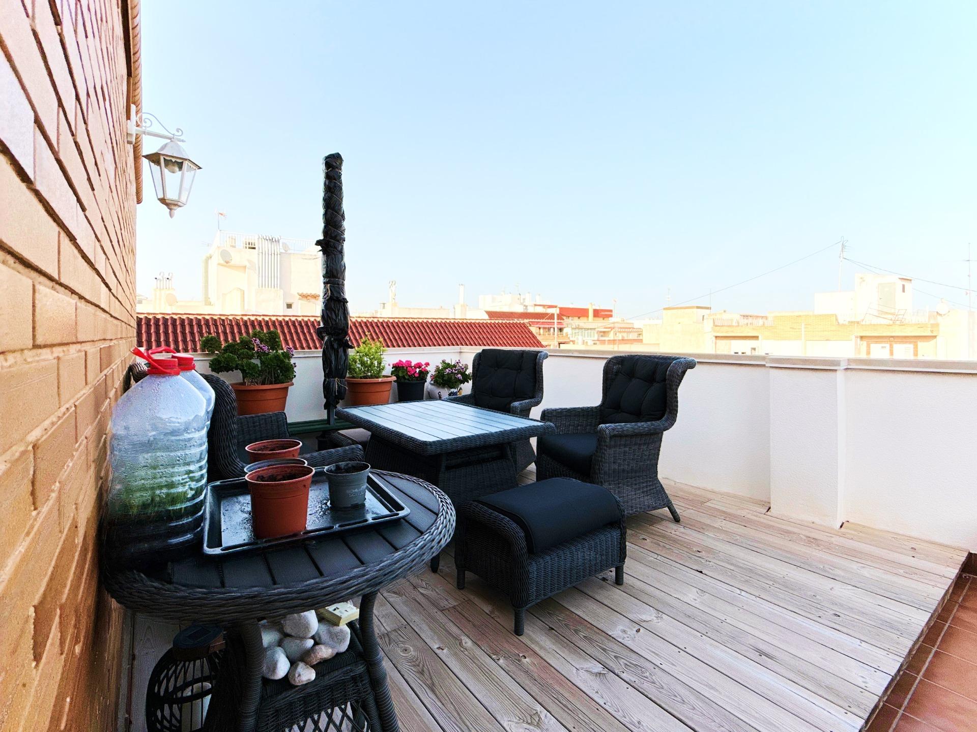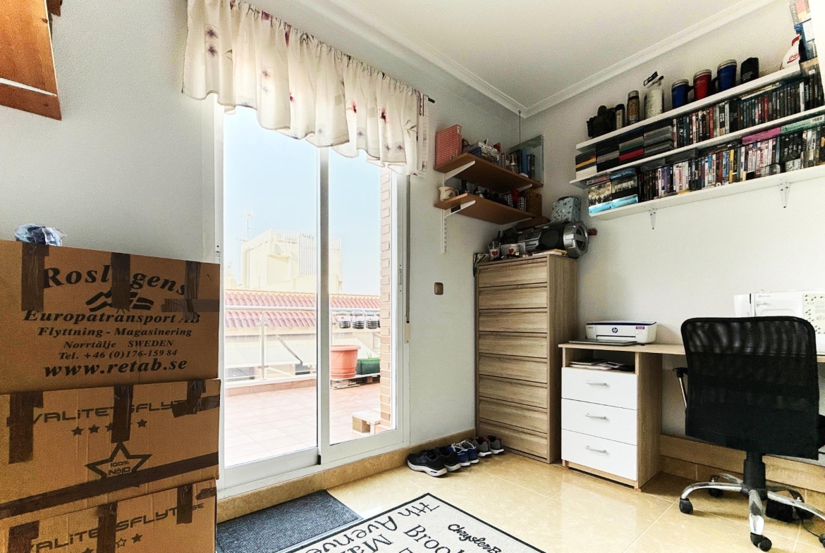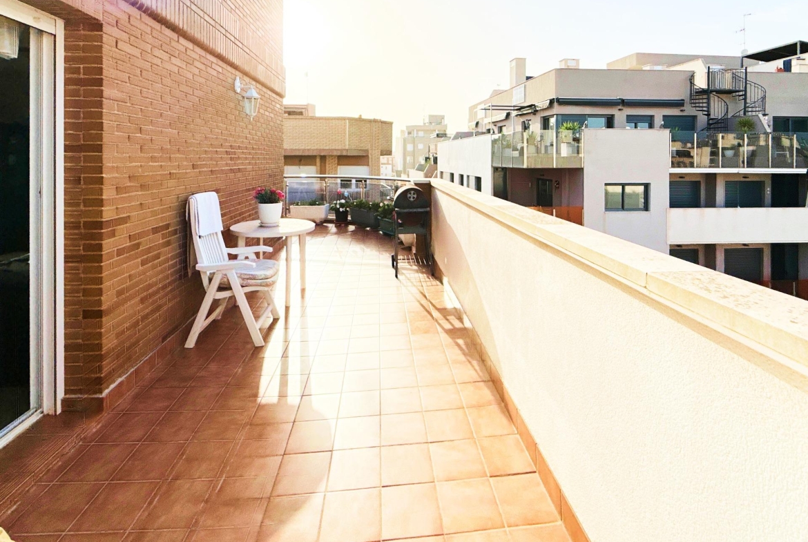 Os presentamos esta maravilla de Ático en la zona centro de Torrevieja.~~La vivienda es un ático compuesto de 4 habitaciones y 2 baños (uno de ellos en suite para la habitación principal). ~Sus dos terrazas nos brindan la oportunidad de relajarte en varios lugares, disfrutando de múltiples orientaciones y poder aprovechar todos los momentos de sol y de sombra según el momento del día.~2 de las habitaciones están conectadas directamente con la terraza principal que rodea en forma de L la vivienda y 1 de habitación tiene su propia terraza de unos 15 metros cuadrados.~Igualmente, en la terraza principal, hay un espacio con una pérgola para poder disfrutar de una buena comida con familiares y amigos, un buen momento de relajación y poder aprovechar los más de 300 días de sol que nos regala el envidiable clima de Torrevieja.~~Además, tiene una cocina independiente completamente equipada tiene igualmente acceso a la terraza y a la parte de la terraza que está cubierta y acristalada, que está estratégicamente ubicada a la salida de la cocina.~~En esta casa nos encontraremos acabados de gran calidad y luminosidad durante todos los momentos del día.~~En el precio viene incluido una plaza de garaje y un trastero en un edificio a 100m para que te olvides de buscar aparcamiento en la zona.~La céntrica ubicación del ático nos permite tener todos los servicios a escasos minutos andando. La plaza de la Constitución esta a 3 minutos andando y el Paseo de Vista Alegre con el puerto a 7 minutos andando (500m).~~Ven YA a visitar esta propiedad exclusiva y quédate sin palabras!!