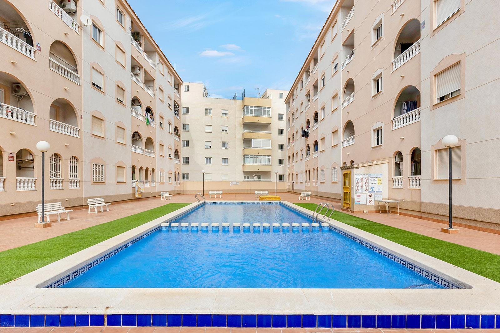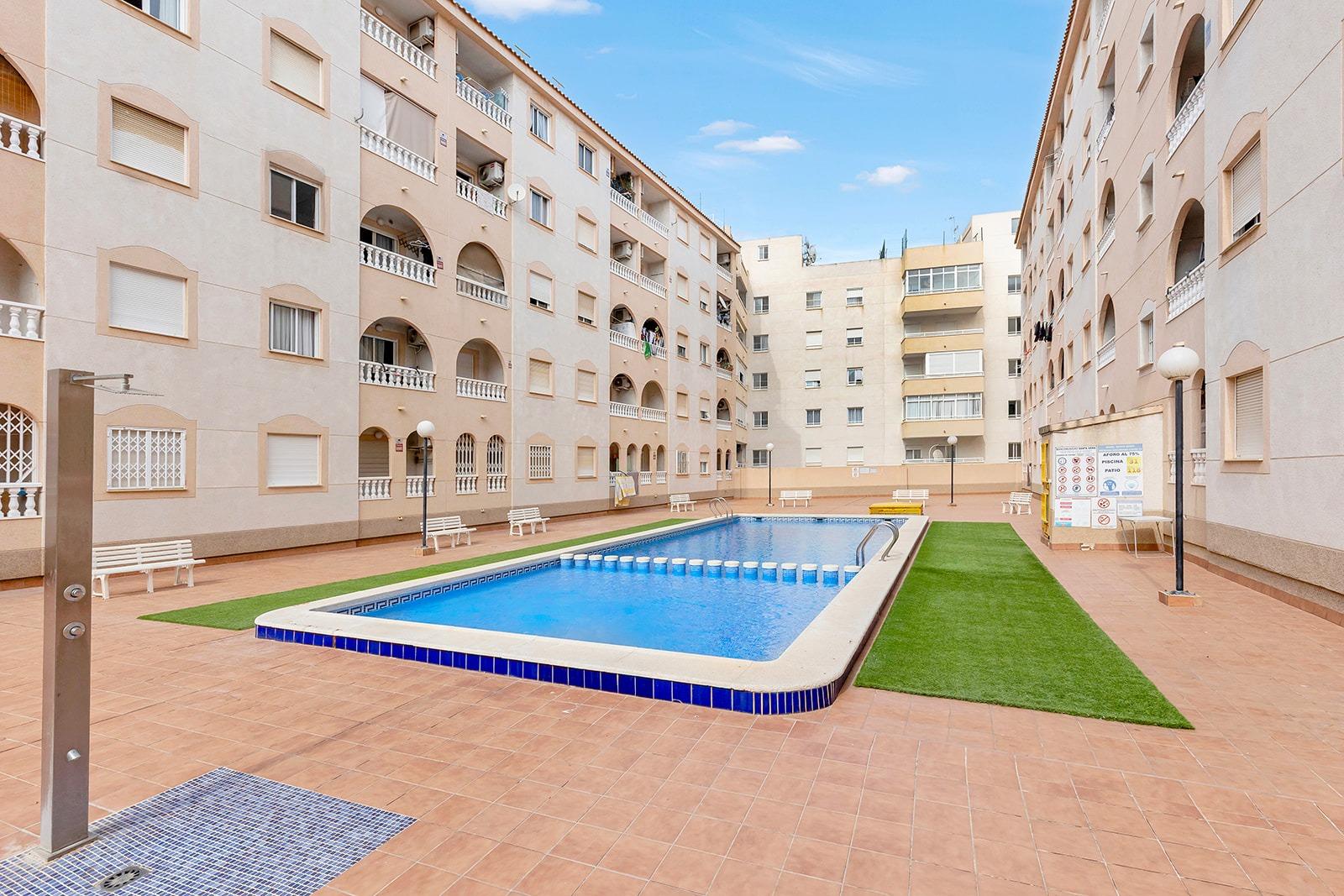 ¡Oportunidad única!~Vive el sueño en esta vivienda en Torrevieja, un lugar rodeado de servicios donde lo tendra todo a unos pocos minutos.~~Esta increíble vivienda cuenta con 2 amplios dormitorios y un baño, diseñados para tu comodidad.~Además, disfrutarás de una cocina americana con ventana y una bonita terraza con vistas a la piscina~~La vivienda además cuenta con zonas comunes y con una bonita piscina comunitaria donde poder tomar el sol con total tranquilidad.~~¡No dejes pasar esta oportunidad! Contacta con nosotros para descubrir cómo esta apasionante villa de lujo que podría convertirse en tu nuevo hogar.~~¿Pensando en vender tu propiedad y adquirir este apartamento de ensueño? Nuestra agencia te ofrece una valoración gratuita, con más de 20 años de experiencia en el sector y los datos de ventas más actualizados. Te ayudaremos a conseguir una venta rápida y ventajosa para que puedas comenzar a disfrutar de la vida que siempre has querido junto al mar.~~¡Contáctanos ahora y da el primer paso hacia tu nueva vida en la Costa Blanca!