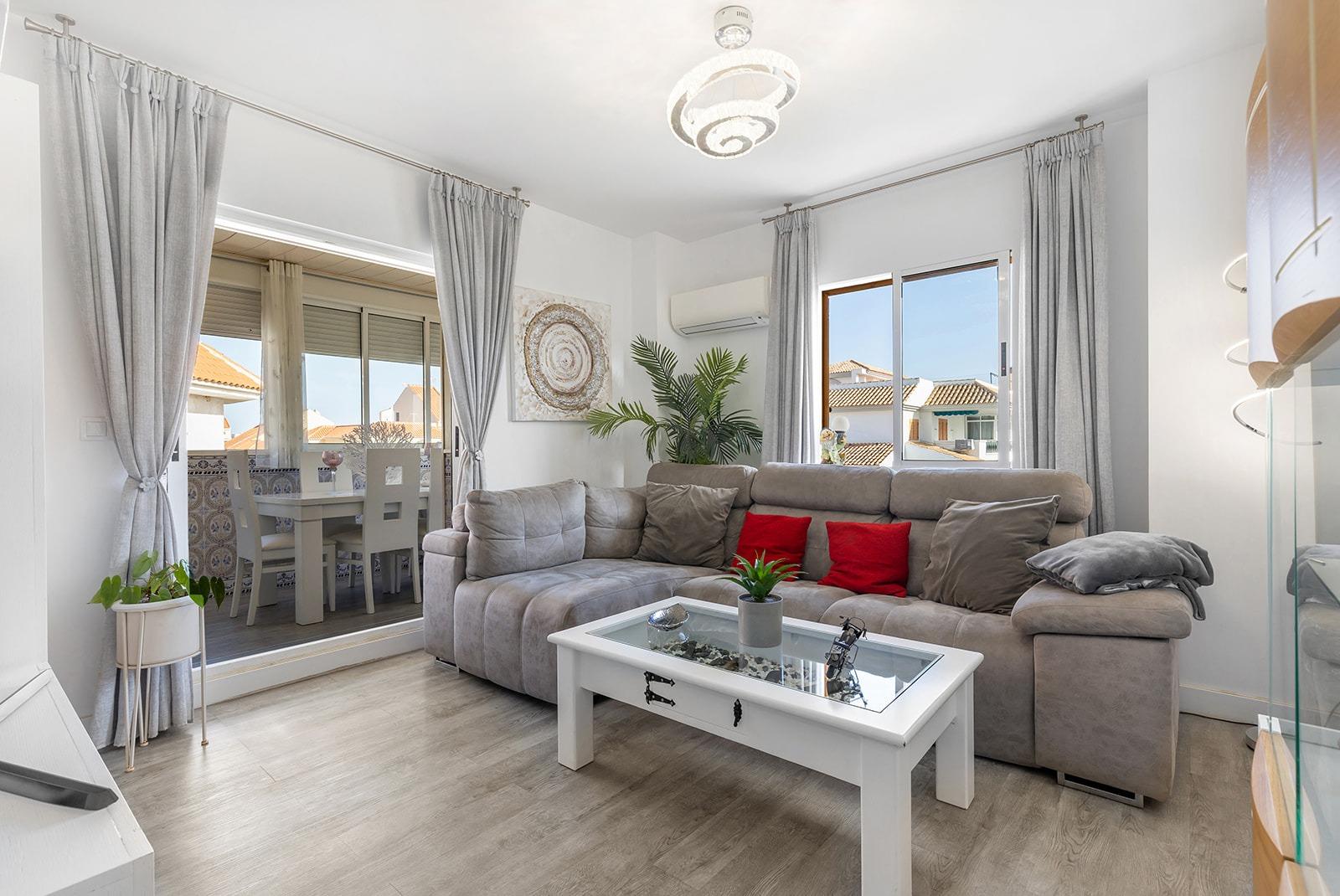 我们为您呈现一套精美绝伦、全新装修的顶层公寓,它将舒适性、设计感和优越的地理位置融为一体。这套公寓拥有三间宽敞的卧室,是全家人舒适居住的理想之选;此外,还有两间宽敞的浴室,兼具实用性和时尚感。公寓的布局充分利用了自然采光,朝东的朝向让住户每天清晨都能享受到明亮的阳光和宜人的景色。这套顶层公寓已配备半装修家具,可根据您的个人风格进行调整。公寓位于一个带公共泳池的住宅区,是您安静安全的放松休闲的理想之选。公寓还设有便捷的停车位,确保您的车辆安全,并提升您的日常生活舒适度。公寓距离海滩仅350米,您可以享受海风拂面,在海边悠闲漫步。公寓地理位置优越,所有基本服务设施一应俱全,例如健康中心、购物中心、超市和餐厅,确保您的日常生活舒适惬意。~~ 一年四季居住和度假的理想之选!~ 感兴趣吗?请联系我们了解更多信息或安排看房。 ~~*广告可能包含错误或不完整的信息,并不构成具有约束力的要约*